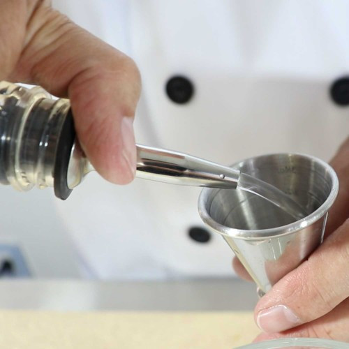 Dosificadores de Acero Inoxidable para botellas. Usados para la aplicación de licores y su fácil identificación del contenido de cada uno. Ventajas principales: (1) Previenen derrame de liquido, (2) Material resistente y (3) Fácil limpieza