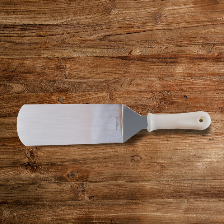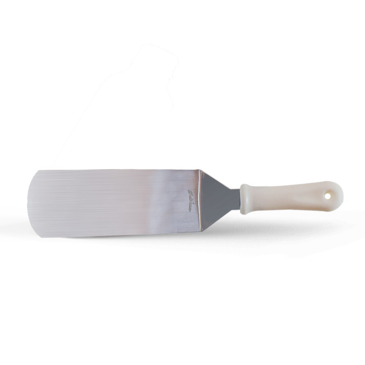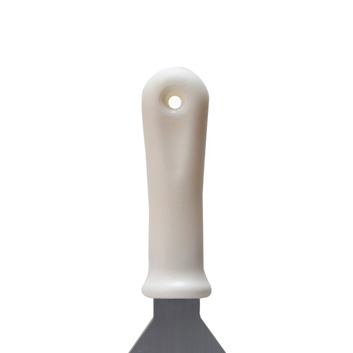 Largo 27.5 cmLargo de Mango 12 cmPlancha de la Espátula: 12 cm largo x 8 cm de ancho.Color Mango: Blanco